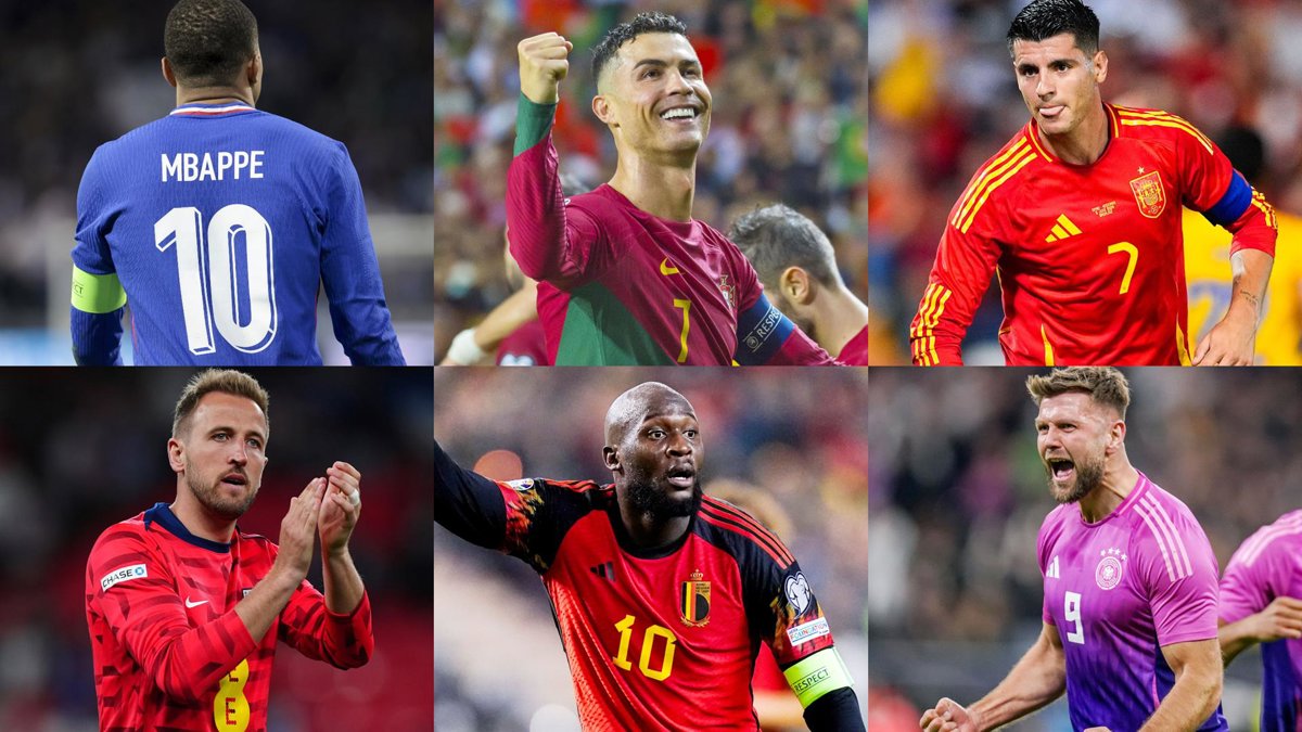 Los delanteros Kylian Mbappé (Francia), Cristiano Ronaldo (Portugal), Álvaro Morata (España), Harry Kane (Inglaterra), Romelu Lukaku (Bélgica) y Niclas Füllkrug (Alemania). - DPA / AFP7 / EUROPA PRESS