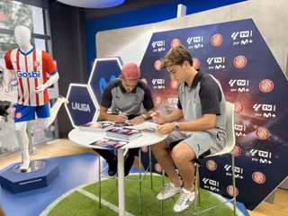 El 'Estadio Movistar LaLiga', espacio interactivo dedicado al fútbol, recorrerá esta temporada un total de diez ciudades españolas y ha arrancado en Girona, con la presencia de los jugadores del Girona FC Yan Couto y Pablo Torre como protagonistas.