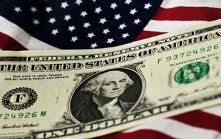 Archivo - FILED - 14 July 2011, Dresden: A US One Dollar is pictured on a US flag. Photo: Arno Burgi/dpa-Zentralbild/dpa