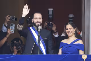 Archivo - El presidente salvadoreño, Nayib Bukele, y la primera dama, Gabriela Rodríguez, en el Palacio Nacional.