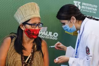 17 January 2021, Brazil, Sao Paulo: A woman receives his dose of the Coronavirus (Covid-19) vaccine by a health worker during a vaccination campaign. Brazil's National Health Surveillance Agency has granted emergency approval to each of Sinovac's and As - Marcelo Chello/ZUMA Wire/dpa