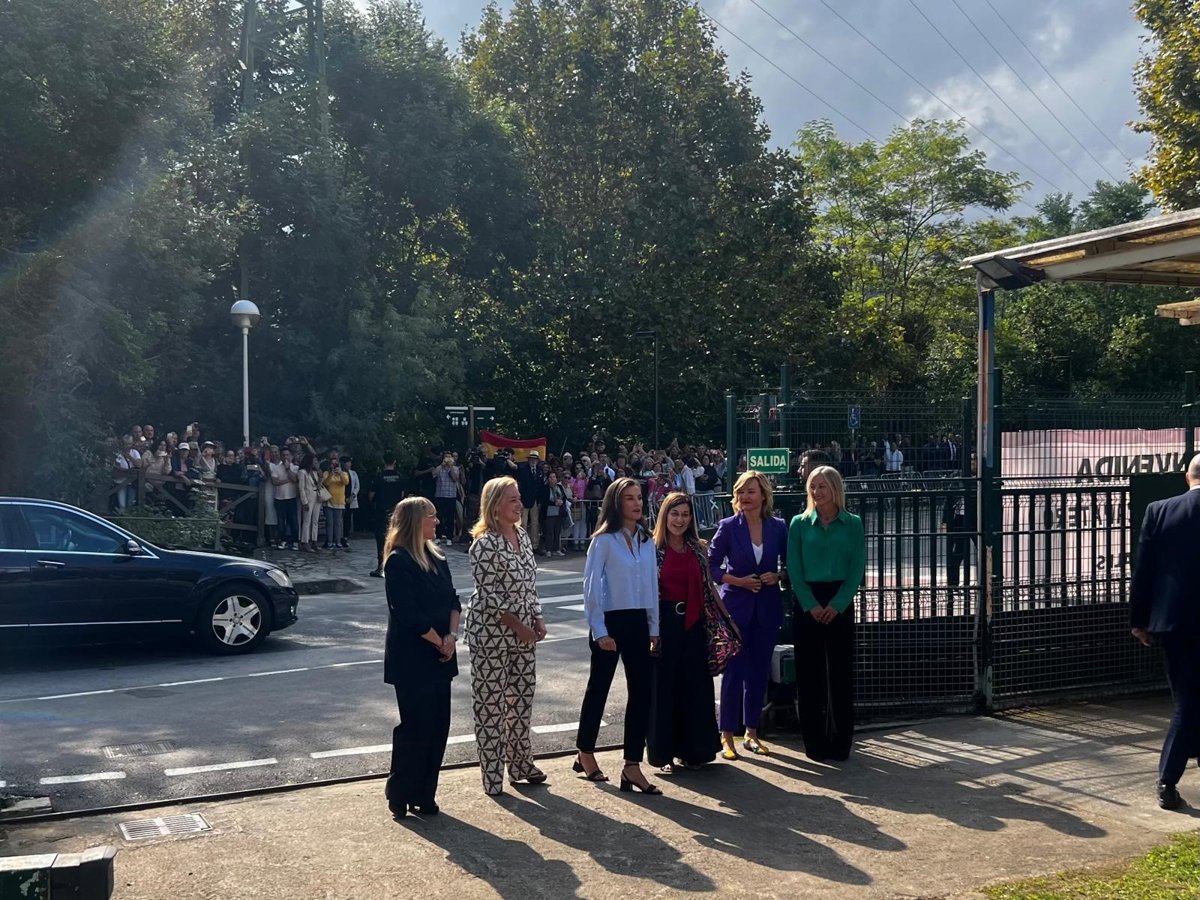 La Reina Letizia con las autoridades regionales a su llegada al IES Doctor José Zapatón de Castro Urdiales - EUROPA PRESS