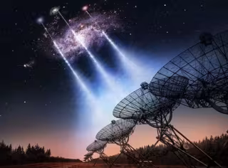 Las ráfagas rápidas de radio, FRB (Fast Radio Burst), se encuentran entre las explosiones más brillantes del universo. Las ráfagas emiten principalmente ondas de radio. Los destellos son tan poderosos que los radiotelescopios pueden detectarlos incluso a más de 4.000 millones de años luz de distancia. Esa visibilidad continua sobre distancias tan vastas significa que las ráfagas contienen inmensas cantidades de energía. Cuando se apaga, un solo FRB contiene diez billones (diez millones de veces un millón) de veces el consumo anual de energía de toda la población mundial.