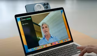 El vicepresidente sénior de ingeniería de 'software' de Apple, Craig Federighi, mostrando la función de Cámara de continuidad en la WWDC 2022