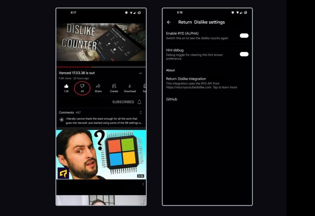 Esta versión de YouTube ofrece funciones extra, como la capacidad de visualizar contenidos sin anuncios -algo solo disponible con YouTube Premium, de pago- o en un segundo plano, la integración del botón 'no me gusta' o un tema oscuro para pantallas AMOLED.